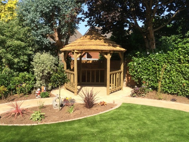 Extremely popular due to its rustic look, machine round timber construction and affordable prices, our African style Gazebos create an authentic and sturdy thatched wooden gazebo. We use pressure treated timber, guaranteed for 10 years and ready for immediate use with no need for additional stain or preparation. The roof features Cape Reed Thatch Tiles which offer a modern twist to the traditional thatched roof. These beautifully crafted gazebos have been designed to compliment your garden area, making the most of your outdoor space whatever the weather.