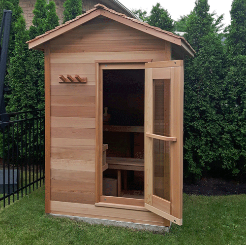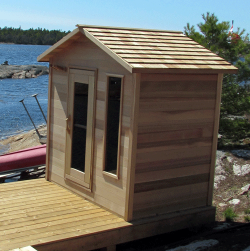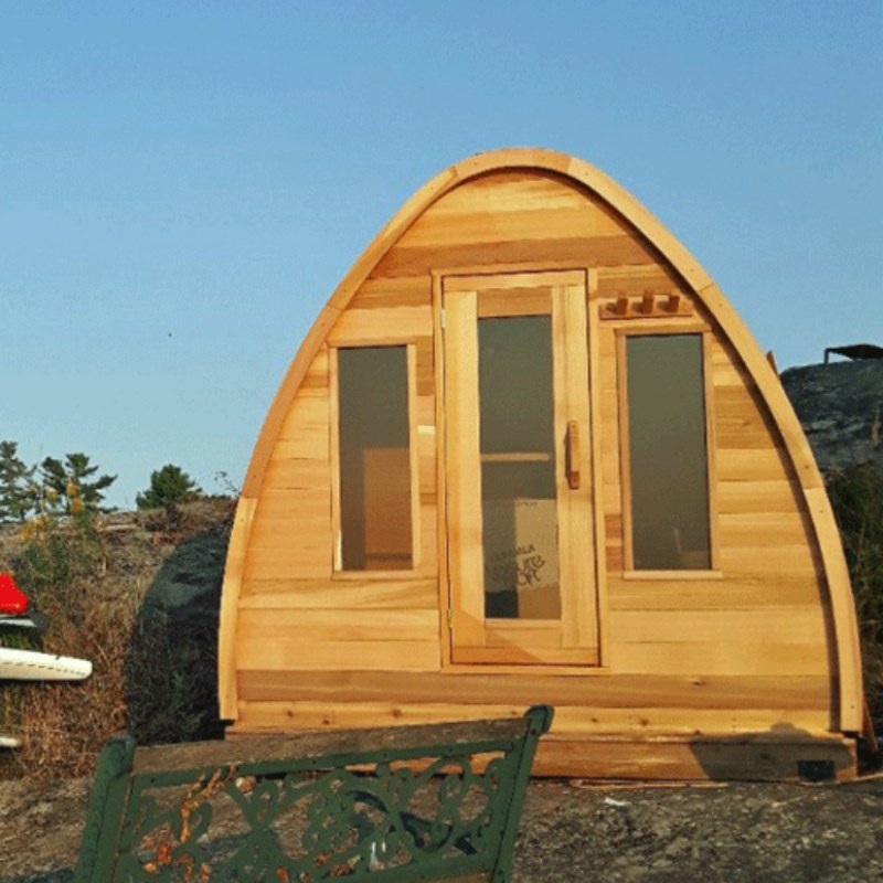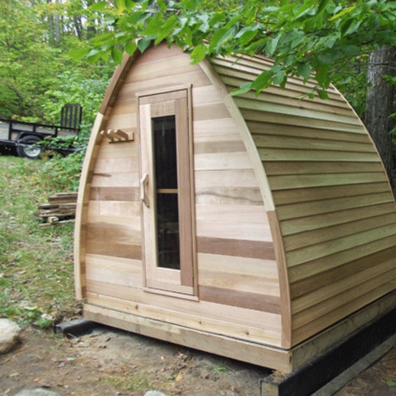 These organic rain-drop shaped outdoor saunas are the newest sensation to hit Canada. The extra head-space and wonderful design comes is made exclusively from Clear Western Red Cedar. With endless options, you can even create your own outdoor sauna. With your Outdoor POD Sauna you must either order bevel siding or cedar shingles to make the finished product water tight. You can order the kit without an extra roofing material but it is recommended that you install your own asphalt shingles or other roofing material on top yet.