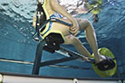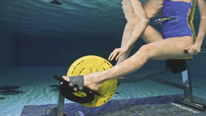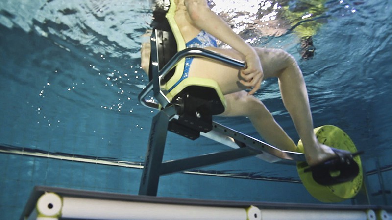 Ideal for pool depth 100-70 cm; designed to facilitate the training in lumbars pathologies or progressive activation of lowerlimbs, favourable for a complete workout (joining it with arms), by the almost complete immersion of the trunk (not possible in regular bikes.