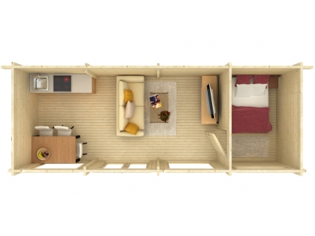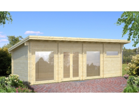 The Idaho 1 is a contemporary designed pent roof Log Cabin with cylinder locking double door and toughened double glazed windows. The walls are 70mm Chalet cut logs, 19mm tongue and groove ceiling and 28mm tongue and groove floor. The roof has a felt covering. The double door has a low threshold door sill with stainless steel protective capping and laminated frame. The cabin is supplied unfinished and can be stained or painted in any colour to suit. It has a manufacturer’s 5-year guarantee.
