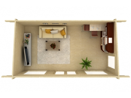 The Idaho 2 is a pent style cabin that sizes in around 20m2 and has plenty of space for all sorts of activities. Just like all of our products you have the guarantee of a flawless design using materials of an extremely high quality. Nordic pine is chosen as the timber used thanks to its extremely tough exterior and solid protection against rot. The pine is chalet cut which provides a tighter connection between the timbers and this means it is much more resistant to wind damage. The tongue and groove cladding is used for the entire timber construction including the roof and floor and this leaves the Idaho 3 with one of the toughest builds we have seen. On the underside of the cabin you have pressure treated joists which will stabilise the cabin and also prevent any water damage to the floor. The overhang on the roof also keeps the walls dry and therefore increases the overall life of the cabin. Accessing the Idaho 3 is easy thanks to the extra wide double doors on the front of the cabin. These doors are very strong and are fully glazed with double glazed glass which allows for full visuals. The doors are fitted to a strong frame that is laminated and is sealed to stop lost heat. The doors have an integrated cylinder lock which will protect the interior from theft and intruders. That is not the only light source for the cabin, on either side of the doors you have the impressive full double-glazed glass panels which allow in an abundance of light and give the inside a bright airy feel. As well as this you have the benefit of visuals inside and out. Another window is positioned on the side of the cabin and this will add even more light. When it comes to assembly of the Idaho 3 there is no stress. The cabin is pre-cut and just needs to be put together which is where the assembly kit comes into place and all you have to do is follow the guided instructions. Our log cabins are supplied untreated; this gives you the flexibility and choice to apply a treatment colour or stain of your choice. • The Idaho 3 is a fantastic cabin that is built from high quality materials to guarantee you long lasting value • The stunning visuals are thanks to the great design and the huge double-glazed panels that allow in natural light for an airy feel • The massive inside space is accessible thanks to the wide double front doors which have a lock integrated that stops easy access and adds security • Tongue and groove construction to the walls, roof and floor mean the cabin is completely weatherproof and will stand strong for years to come • Please note that log cabins are supplied untreated; this gives you the flexibility and choice to apply a treatment colour or stain of your choice