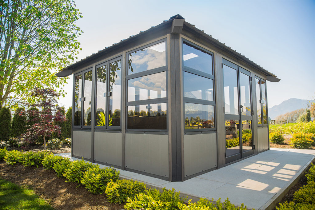 The Resort by Visscher is beautiful 11x14 structure. Like its namesake, this model is to be enjoyed all year round. A large 43″ x 83″ skylight dome and bifold windows makes this a bright entertaining room by natural light. Enhance your Resort with a bay kit, which adds space and styling.